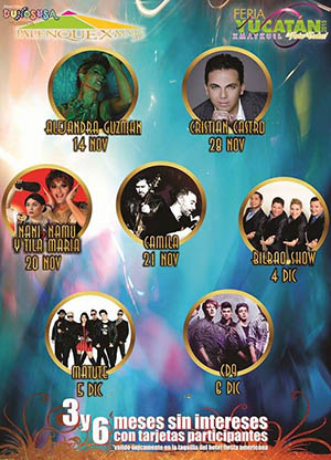 El sábado 14 de noviembre el Palenque abrirá sus puertas con el concierto de Alejandra Guzmán, seguido el viernes 20 de noviembre con una noche mexicanísima a cargo de Nani Namu y Tila María Sesto. Camila, Cristian Castro, Bilbao Show, Matute y CD9 también forman parte de la cartelera.
